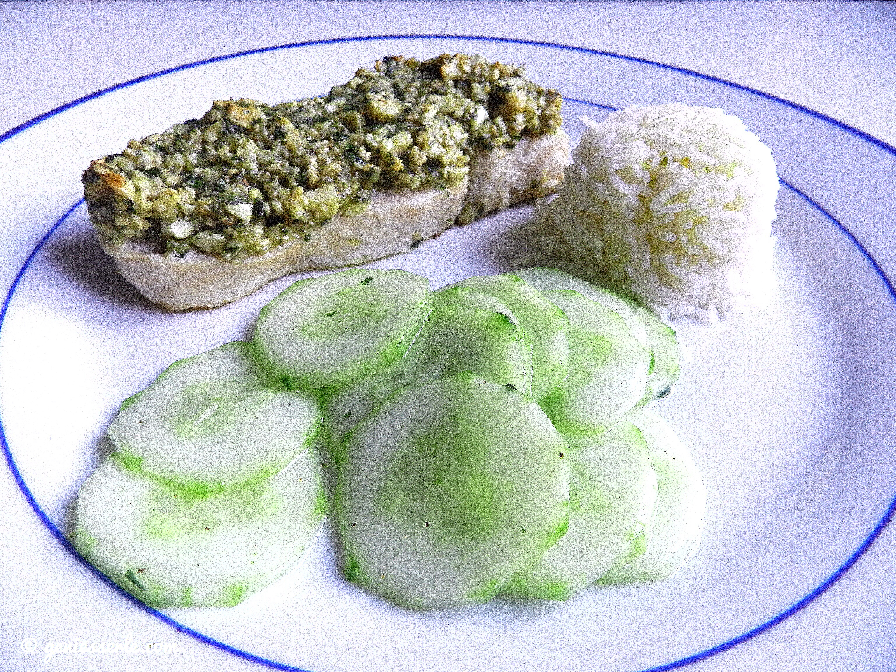 Beim Durchblättern des Kochbuchs „Kochen für zwei – und nichts bleibt übrig“ (GU Verlag) ist mir das Rezept „Fischfilet mit Wasabi-Kruste“ sofort ins Auge gesprungen … und ich habe mich dunkel daran erinnert, dass da im Vorratsschrank noch eine Tube Wasabipaste schlummert, die unbedingt verwertet werden sollte! Im Originalrezept wird die Kruste mit Wasabi-Erbsen hergestellt, ich habe es dann etwas abgewandelt und es ist wirklich richtig lecker geworden.