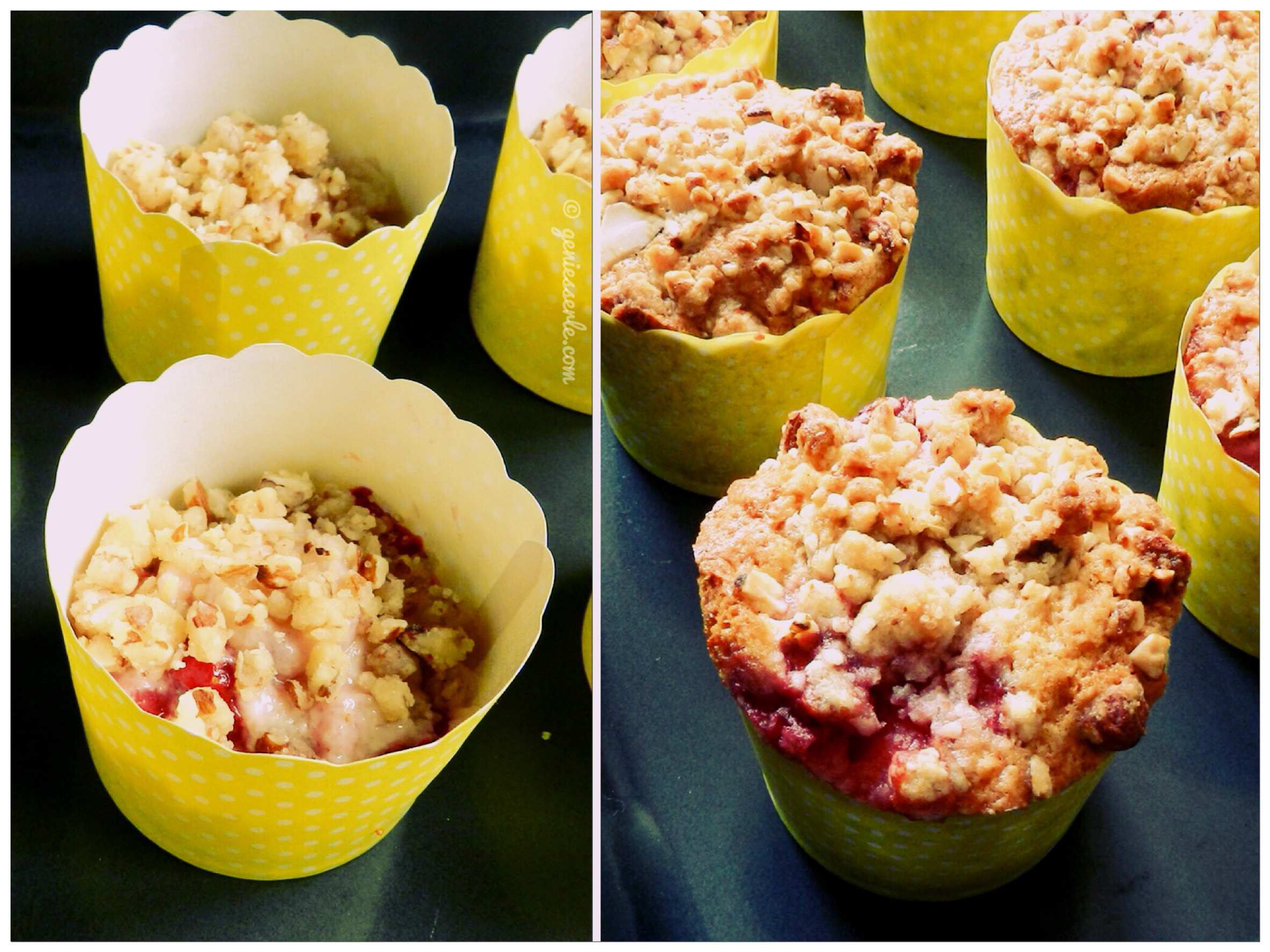 … die Muffins sind schön saftig geworden und die Mandelknusperstreusel passen perfekt …