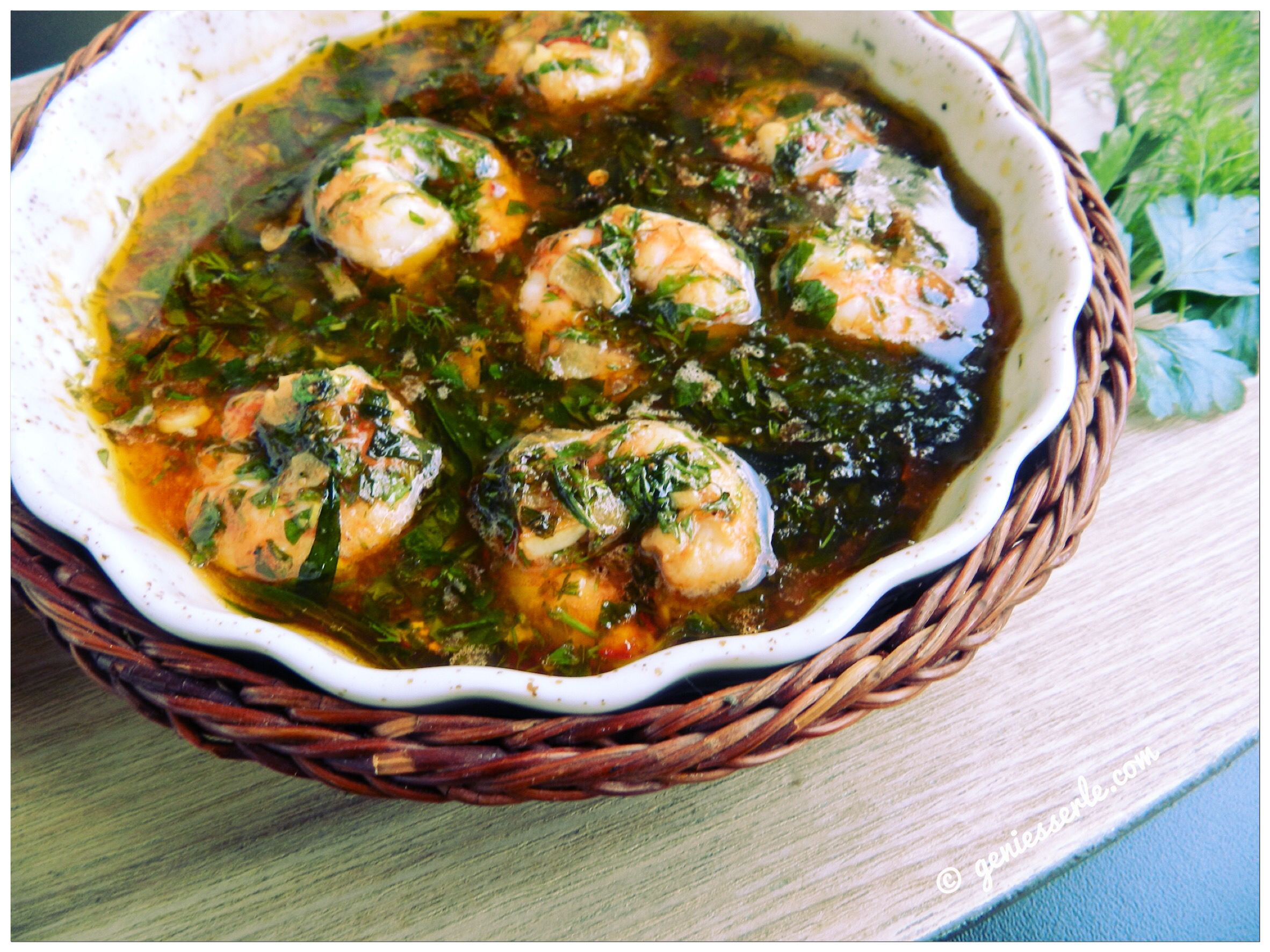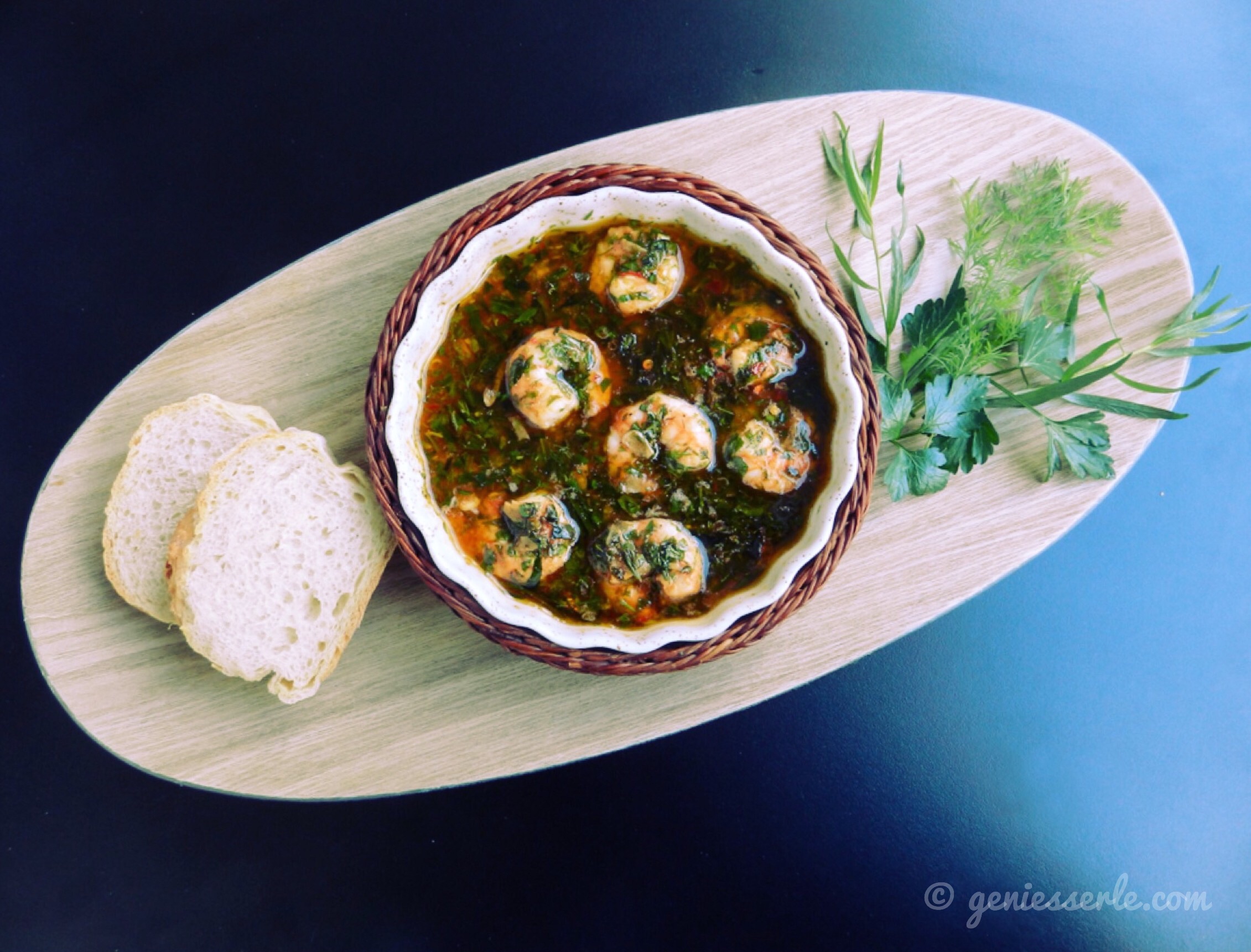 Hmmmmm, durch die Kräuter und den Anis hat dieses Gericht eine ganz eigene Geschmacksnote und schmeckt mir persönlich (fast) besser wie die „gambas al ajillo“