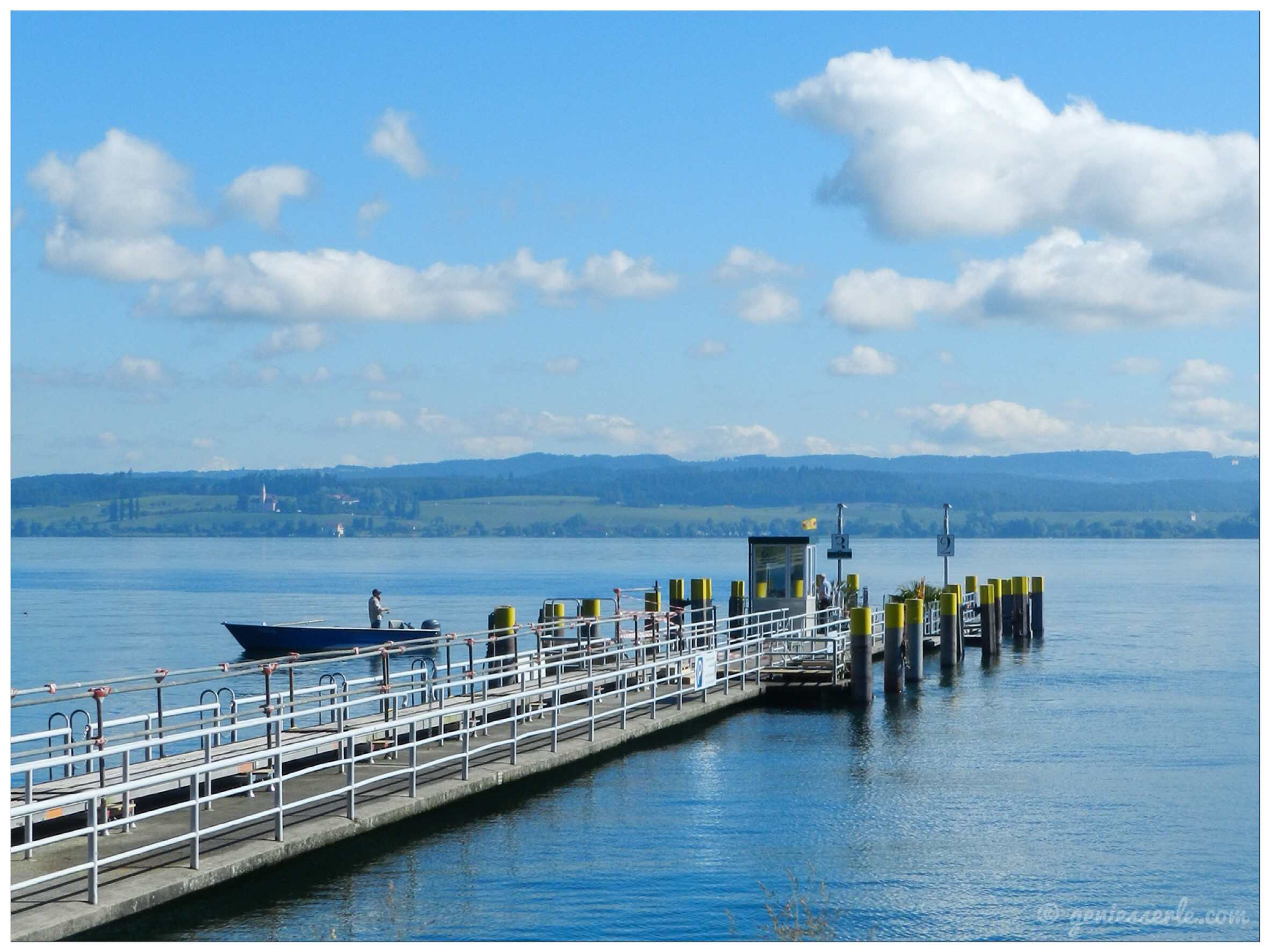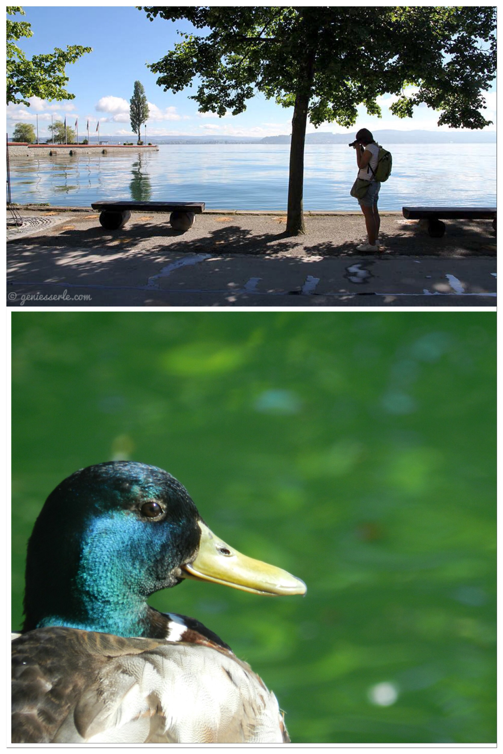 … wir haben das Vögelchen weiter singen lassen und uns Richtung Wasser aufgemacht … der See lag auch noch um 9.00 Uhr ruhig vor uns und beim Blick über die Hafenmauer konnten wir ein kleines Schwätzchen unter Männern an der Schiffsanlandestelle beobachten … die Ruhe vor dem Sturm quasi, denn hier legen tagsüber die grossen Kursschiffe der Weissen Flotte an …