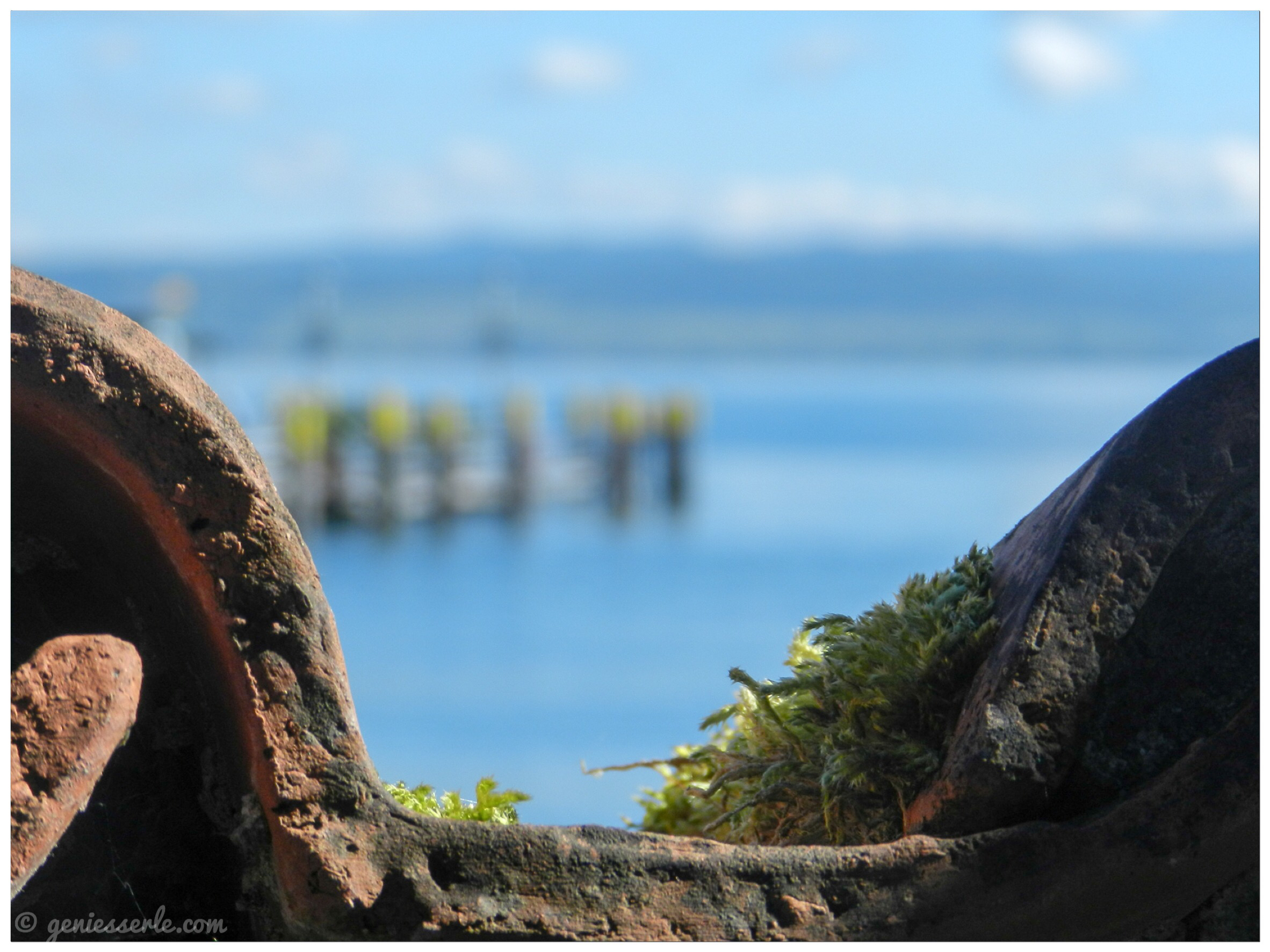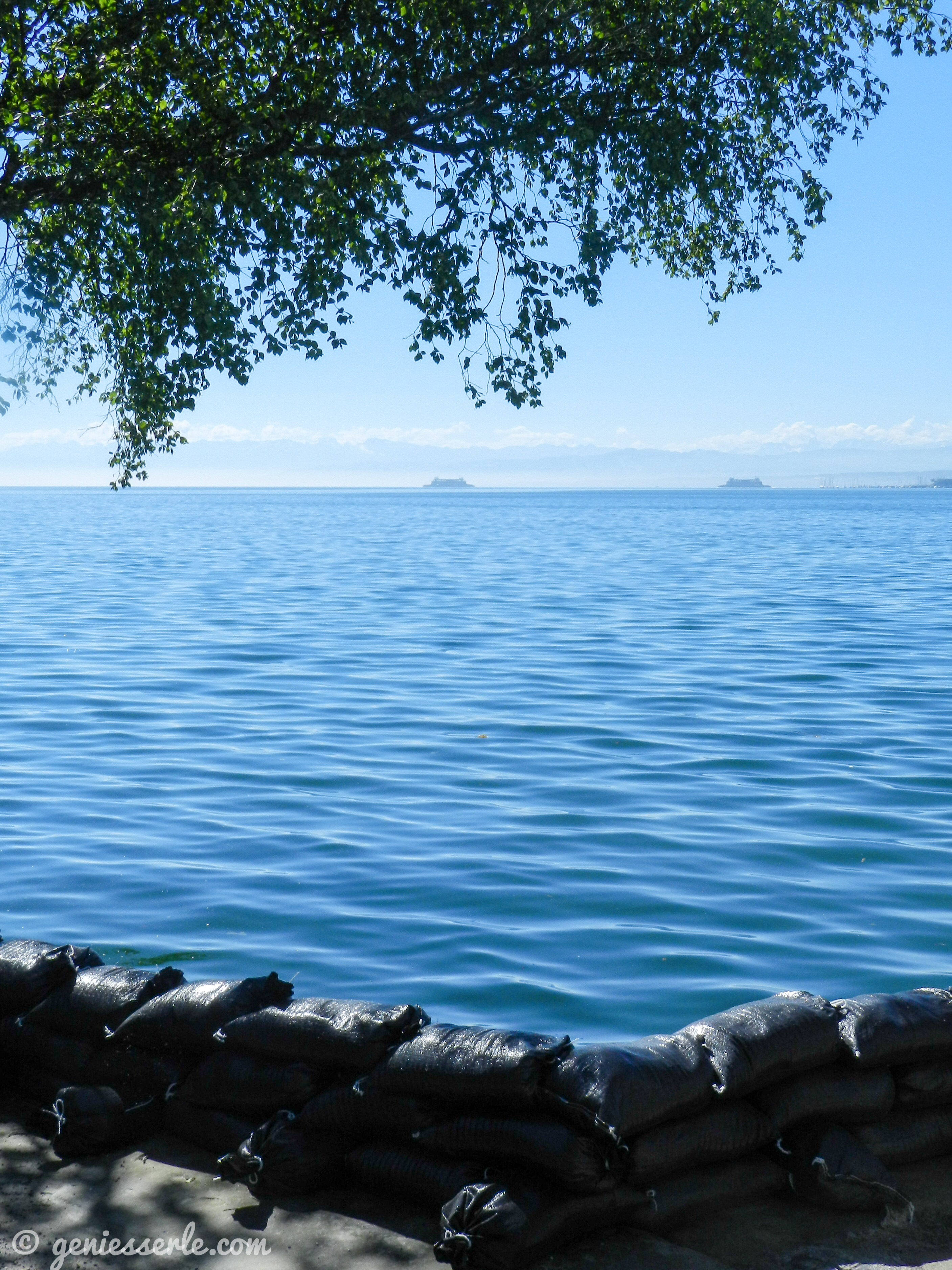 irgendwann – nachdem viele Bilder geknipst waren, unsere Mägen knurrten und die Sonne immer wärmer wurde – haben wir uns auf dieses kleine schattige Bänkle verzogen, unsere Einback verdrückt und die Ruhe und Aussicht genossen.